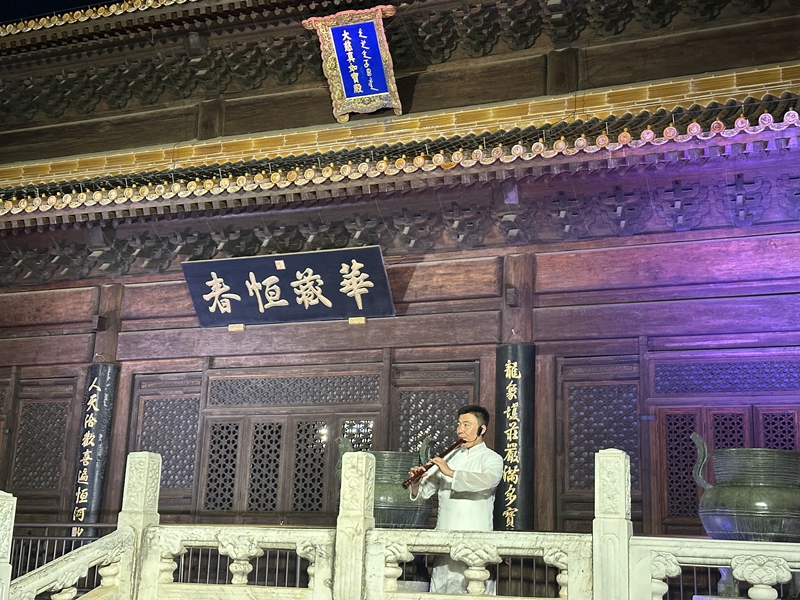 据介绍,活动于每周二至周日晚间举行,每日安排两个场次(19:15-20:00;19:45-20:30),每场限流80人,确保游客享有舒适、静谧的观赏环境,活动将持续至国庆假期。参与者可漫步于光影交织的园林小径,依次欣赏迎宾舞的典雅礼序、韵琴斋中清越悠扬的古琴演奏、枕峦亭翩若惊鸿的《惊鸿舞》、小玉带桥上柔情似水的《雨碎江南》独舞,以及经典昆曲《牡丹亭》的选段,终程将于西天梵境景区的金丝楠木大殿前达到高潮,压轴舞蹈表演《敦煌飞天舞》以灵动之姿融入古建,在这座极具历史与艺术价值的殿宇前,为观众带来视觉与心灵的双重震撼,也为整场文化活动写下圆满句号。
