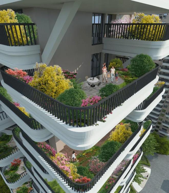每户花园朝向说明:奇数层,花园朝正南。偶数层,花园朝东/西。花园面积48平到61平。楼栋内,有公共区域,有花园和景观设计。花园部分,交付为有绿植。